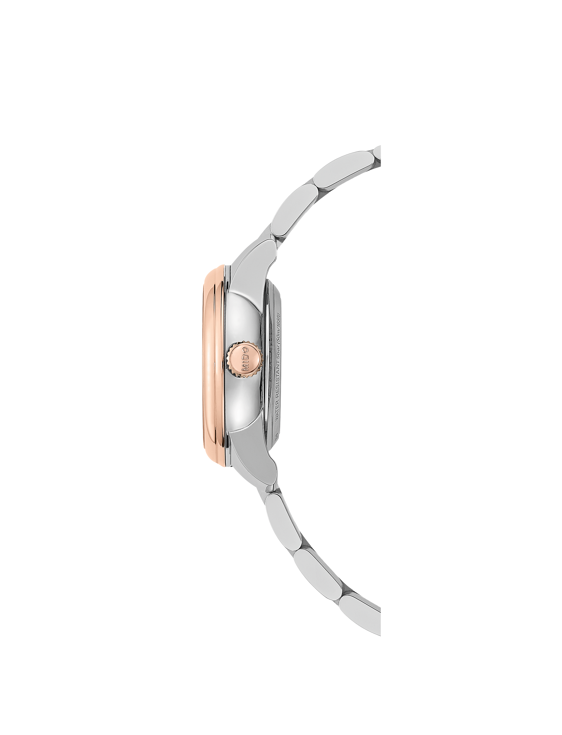 It may be small, but the Baroncelli Lady Twenty Five Swiss watch knows how to be the centre of attention. Everything is harmoniously incorporated inside the polished steel case, its 25mm in diameter presenting graceful and balanced lines. Timelessly chic, this classic timepiece refuses to be confined by trends and is brought to life by an automatic movement enhanced with a Nivachron™ balance-spring.