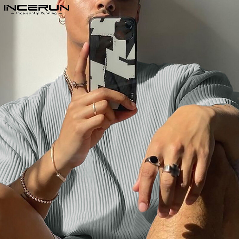 Beehoo INCERUN Mens Short Sleeve Soft Pajamas T Shirt Shorts Suits Sleepwear Suits Lounge Sets